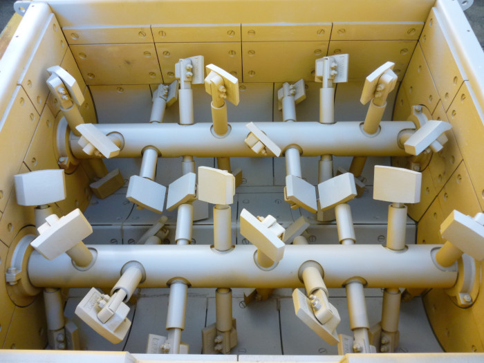 與日本德島大學(xué)共同研發(fā)的攪拌器具有以下特點:雙臥軸強(qiáng)制式攪拌器,長軸短臂,淺底結(jié)構(gòu)。內(nèi)部襯板、葉片采用高強(qiáng)度鑄鐵,耐磨,使用壽命長。攪拌器配有電加熱裝置,避免剛開機(jī)時缸冷和瀝青粘結(jié)。底門采用大型滑門,排料迅速。葉片實現(xiàn)三維空間的快速混合,提高拌和量和攪拌速度,從而使設(shè)備的生產(chǎn)能力得到了大幅提升。